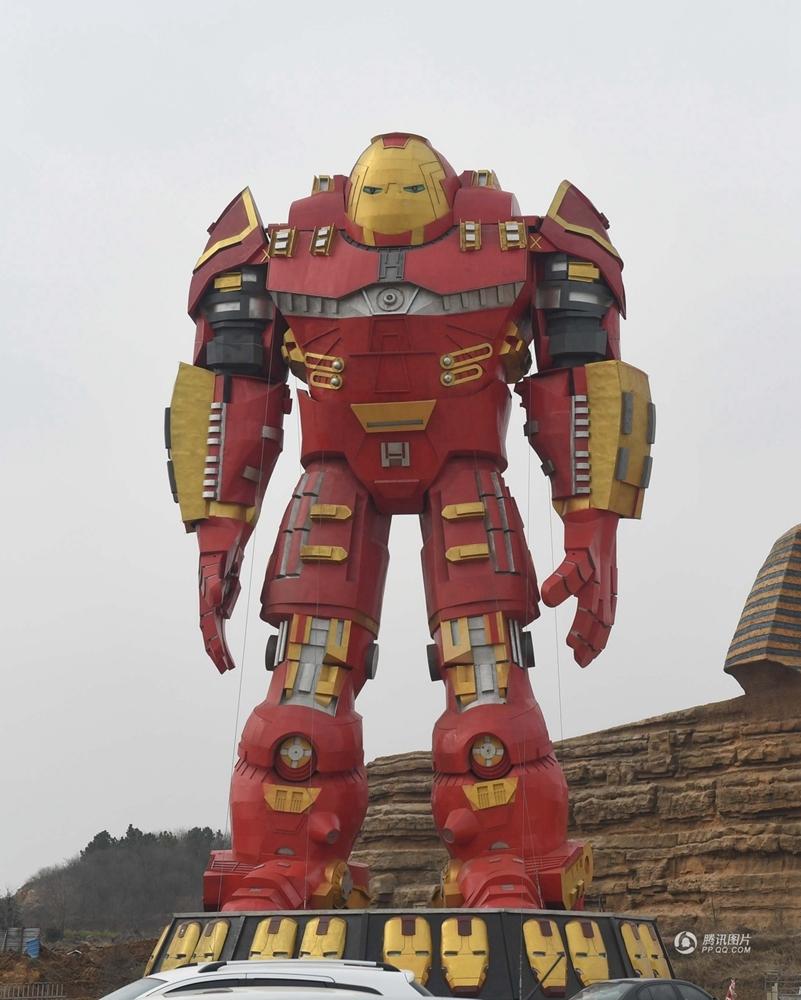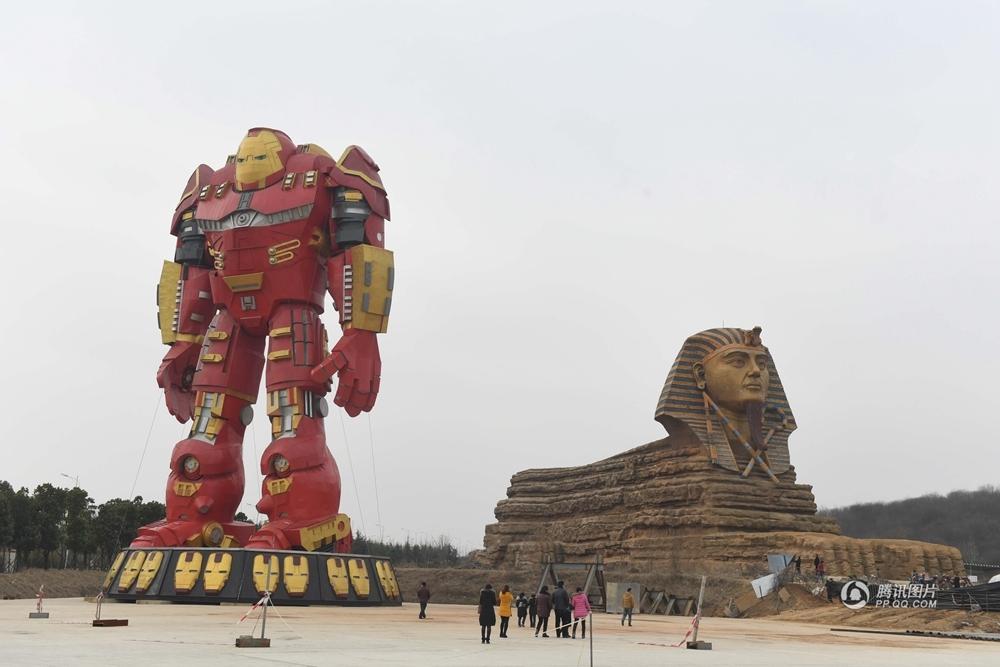安徽現巨型鋼鐵俠為“山寨獅身人面像”站崗
