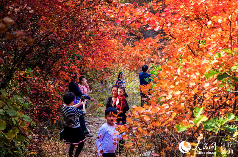 10月29日,河南省禹州市在當地鳩山紅葉谷舉辦賞紅葉、品農家燴菜活動(dòng),吸引了全國的上千名攝影師和近十萬(wàn)名游客參與。