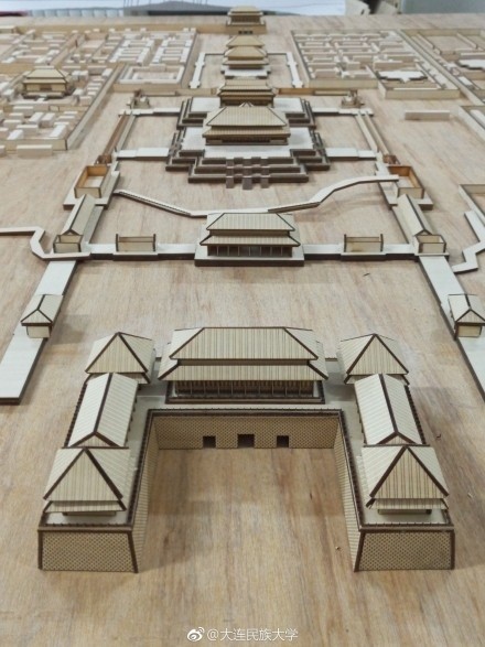 你能想象到,有人能把龐大的北京故宮建筑群“搬”到1.8平方米的木板上嗎?大連民族大學(xué) 的6名學(xué)生就做到了。