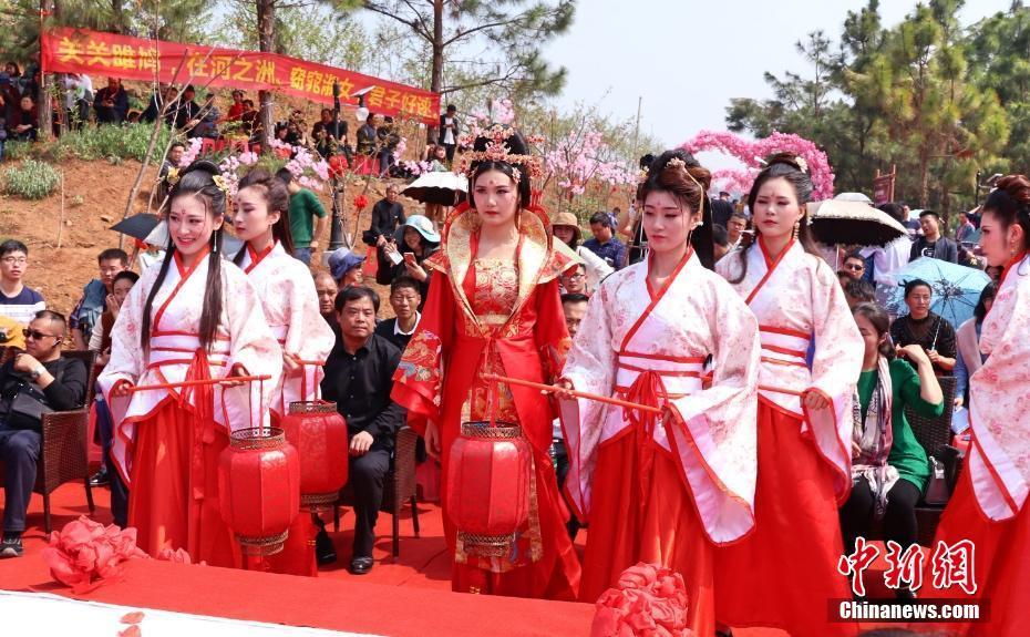 3月31日,在三國歷史文化名城湖北當陽(yáng),一場(chǎng)漢服傳統婚禮秀在該市廟前鎮關(guān)雎河畔進(jìn)行,以此弘揚傳統婚俗文化。當天,“愛(ài)在當陽(yáng),緣來(lái)是你”當陽(yáng)市第五屆相親文化節開(kāi)幕,吸引了來(lái)自全國各地的近萬(wàn)名游客前來(lái),現場(chǎng)不僅舉行了盛大的漢服婚禮秀,還在水面上設置了500米的櫻花長(cháng)廊,場(chǎng)面唯美,風(fēng)景如畫(huà)。據悉,該活動(dòng)將持續到4月1日。