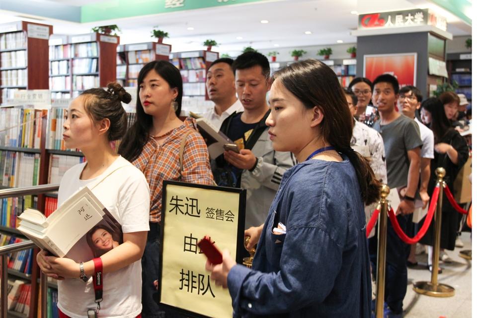 69日,新華書(shū)店鄭州購書(shū)中心,央視住處人朱迅新書(shū)《阿迅》新書(shū)簽售會(huì )現場(chǎng)火爆。
