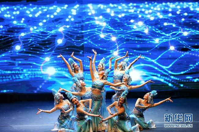 6月24日,在科威特哈瓦利省,廣西文化藝術(shù)團的演員表演舞蹈。由中國駐科威特大使館和科威特文化、藝術(shù)與文學(xué)委員會(huì )聯(lián)合舉辦的“美麗中國·心儀廣西”文藝演出24日在科威特哈瓦利省舉行。此次文藝演出是正在舉辦的科威特第21屆國際音樂(lè )節的一部分。