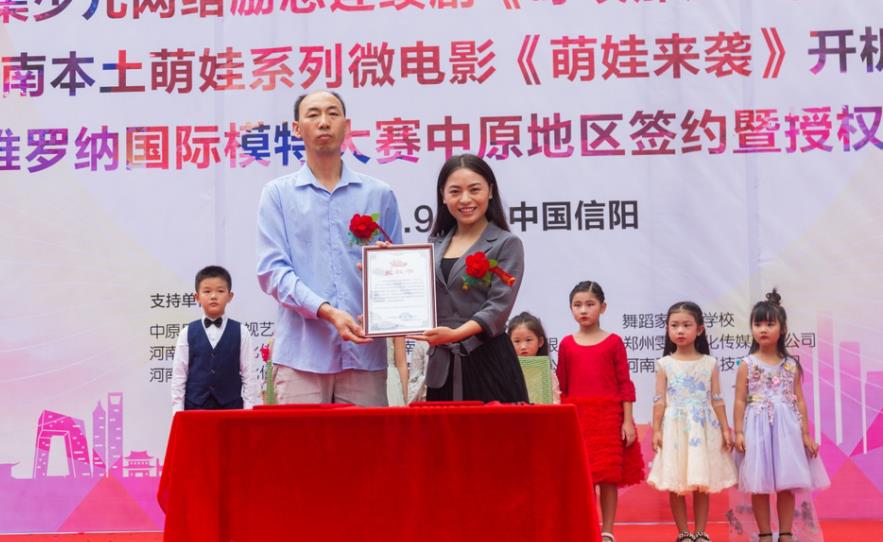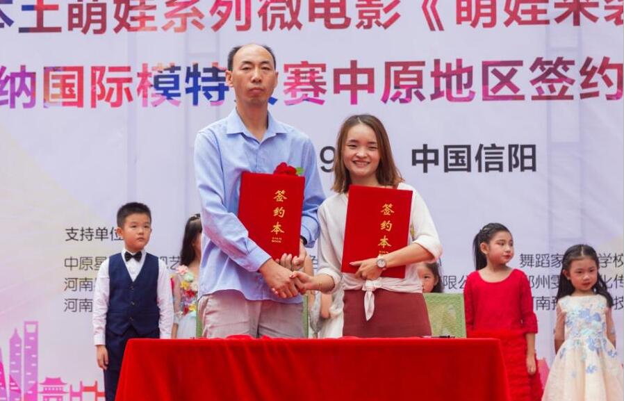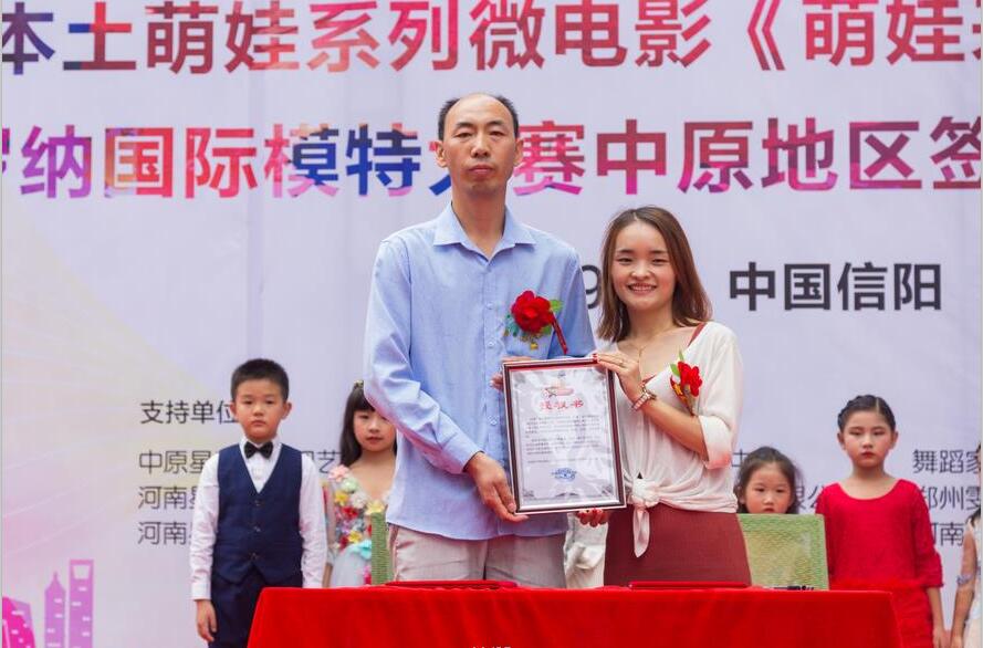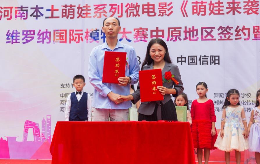 維羅納國際模特大賽少兒組代表隊,信陽(yáng)市舞蹈家藝術(shù)學(xué)校的小明星也為大家呈現了一場(chǎng)高規格、高品質(zhì)的時(shí)尚模特走秀,讓臺下的觀(guān)眾看得連連喊好,同時(shí)迎來(lái)了維羅納國際模特大賽河南組委會(huì )秘書(shū)長(cháng)徐偉先后與河南信陽(yáng)賽區洪穎、湖北恩施賽區賀箐簽約并授權儀式。