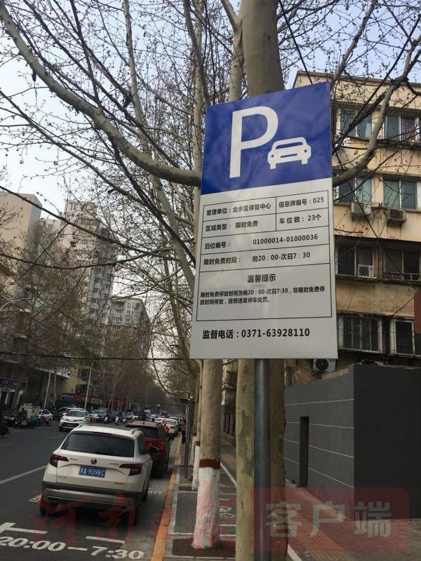 3月21日上午,記者在鄭州市經(jīng)八路與緯一路向北路東側看到,整個(gè)路東側道路內,有一排新施劃的機動(dòng)車(chē)停車(chē)位。這些車(chē)位與以往的停車(chē)位不同,除了在外側有8位數字車(chē)位編號外,在車(chē)位內有“20:00至7:30”字樣。在路臺上,有一醒目的停車(chē)標志牌,牌上顯示此處是金水區停管中心設置的免費限時(shí)停車(chē)位,限時(shí)免費時(shí)段為20:00——次日7:30。提示牌上還顯著(zhù)標明了溫馨提示:限時(shí)車(chē)位僅允許在20:00——次日7:30這一時(shí)段停放車(chē)輛,非限時(shí)時(shí)段停放的將予以處罰。