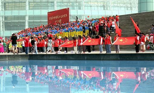 五星紅旗迎風(fēng)飄揚 千人“快閃”歌唱新時(shí)代