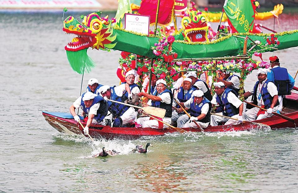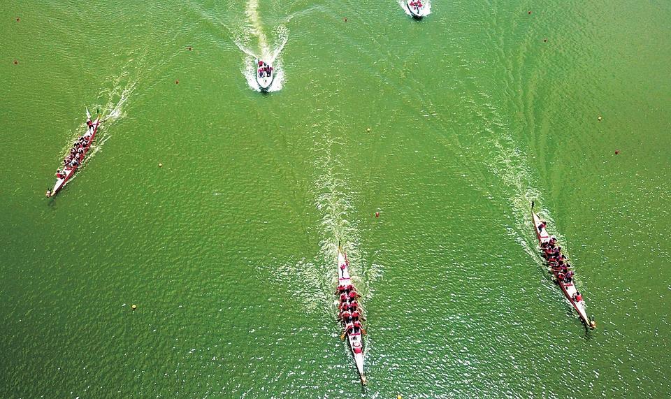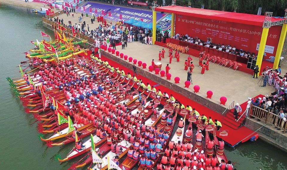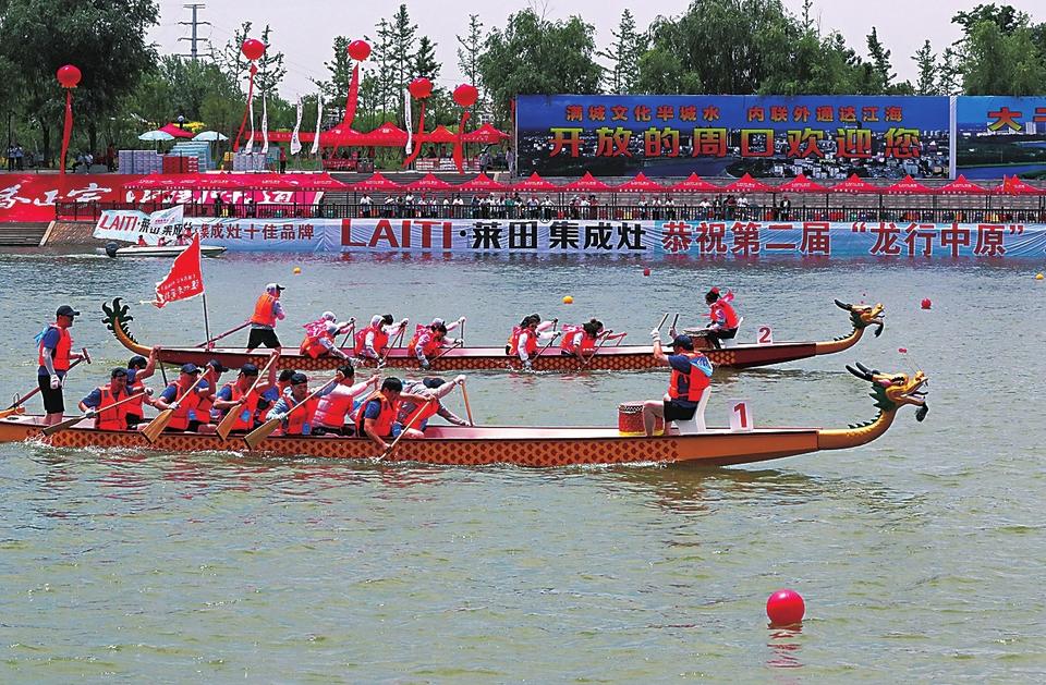 沙潁河上百舸競發(fā)河南省全民龍舟大賽周口站開(kāi)賽