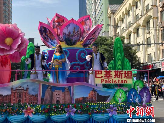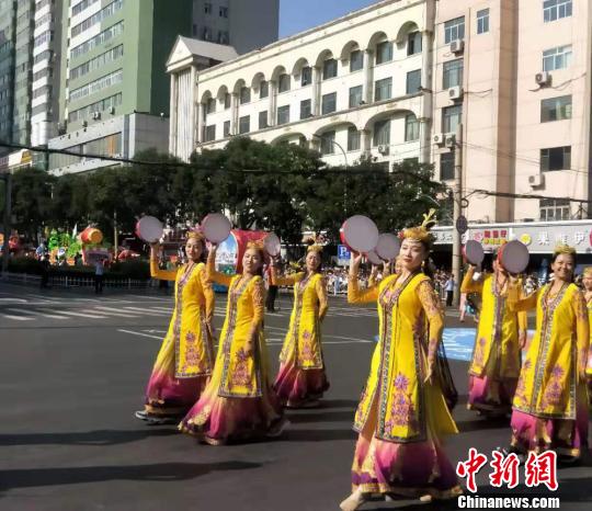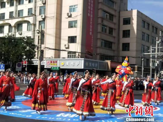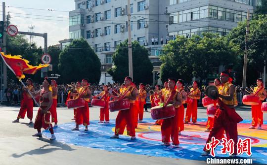 8月17日,作為第七屆蘭州國際鼓文化藝術(shù)周暨第八屆蘭州國際民間藝術(shù)周活動(dòng)的特色活動(dòng),8輛裝扮亮麗、炫彩奪目的花車(chē),載著(zhù)來(lái)自世界各國及國內不同地區的鼓樂(lè )代表隊,從百年中山橋出發(fā),由西向東巡游至蘭州市民廣場(chǎng),一路載歌載舞。