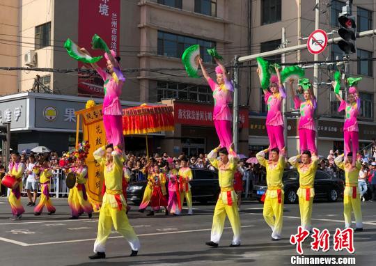 炫彩花車(chē)匯聚蘭州百年中山橋 中外鼓手載歌載舞