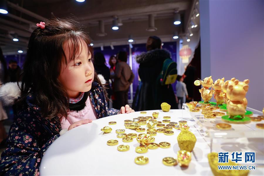1月9日,在韓國首爾中國文化中心,一名小朋友在觀(guān)摩“2020年金鼠報吉十二生肖文創(chuàng )展”上展出的文創(chuàng )產(chǎn)品。 作為2020年“歡樂(lè )春節”系列活動(dòng)在韓國的首場(chǎng)文化活動(dòng)“2020年金鼠報吉十二生肖文創(chuàng )展”9日在首爾中國文化中心與當地民眾見(jiàn)面。