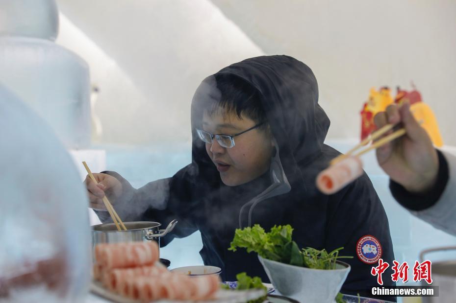 哈爾濱冰屋火鍋走俏 游客體驗“冰火兩重天”