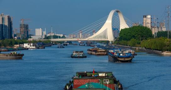2020年4月27日,江蘇省淮安市運輸船舶在京杭大運河上航行;窗彩袕S(chǎng)礦企業(yè)絕大部分已復工復產(chǎn),素有“黃金水道”美譽(yù)的京杭大運河再次迎來(lái)運輸忙碌季。
