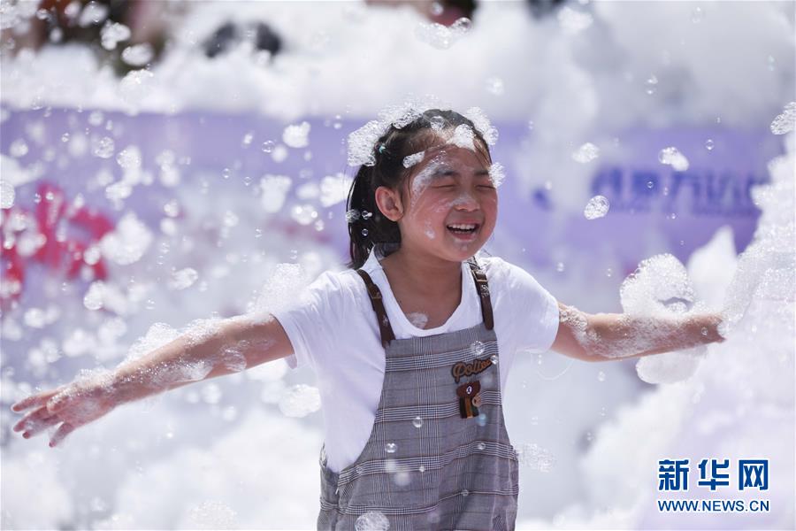 5月30日,小朋友在貴州省黔東南苗族侗族自治州丹寨縣萬(wàn)達小鎮泡泡狂歡場(chǎng)嬉戲。 “六一”國際兒童節前夕,各地的孩子們通過(guò)豐富多彩的形式迎接自己的節日。