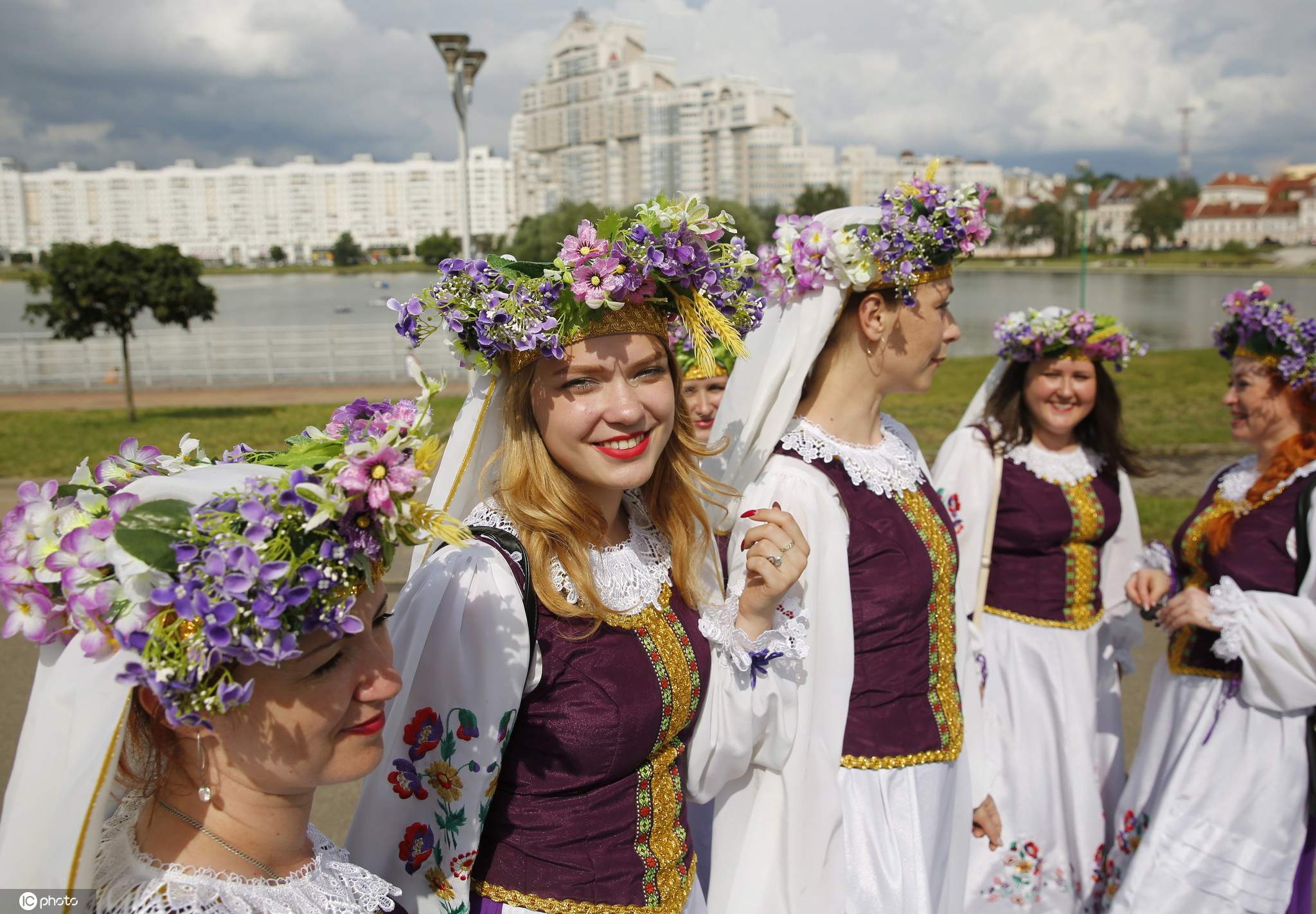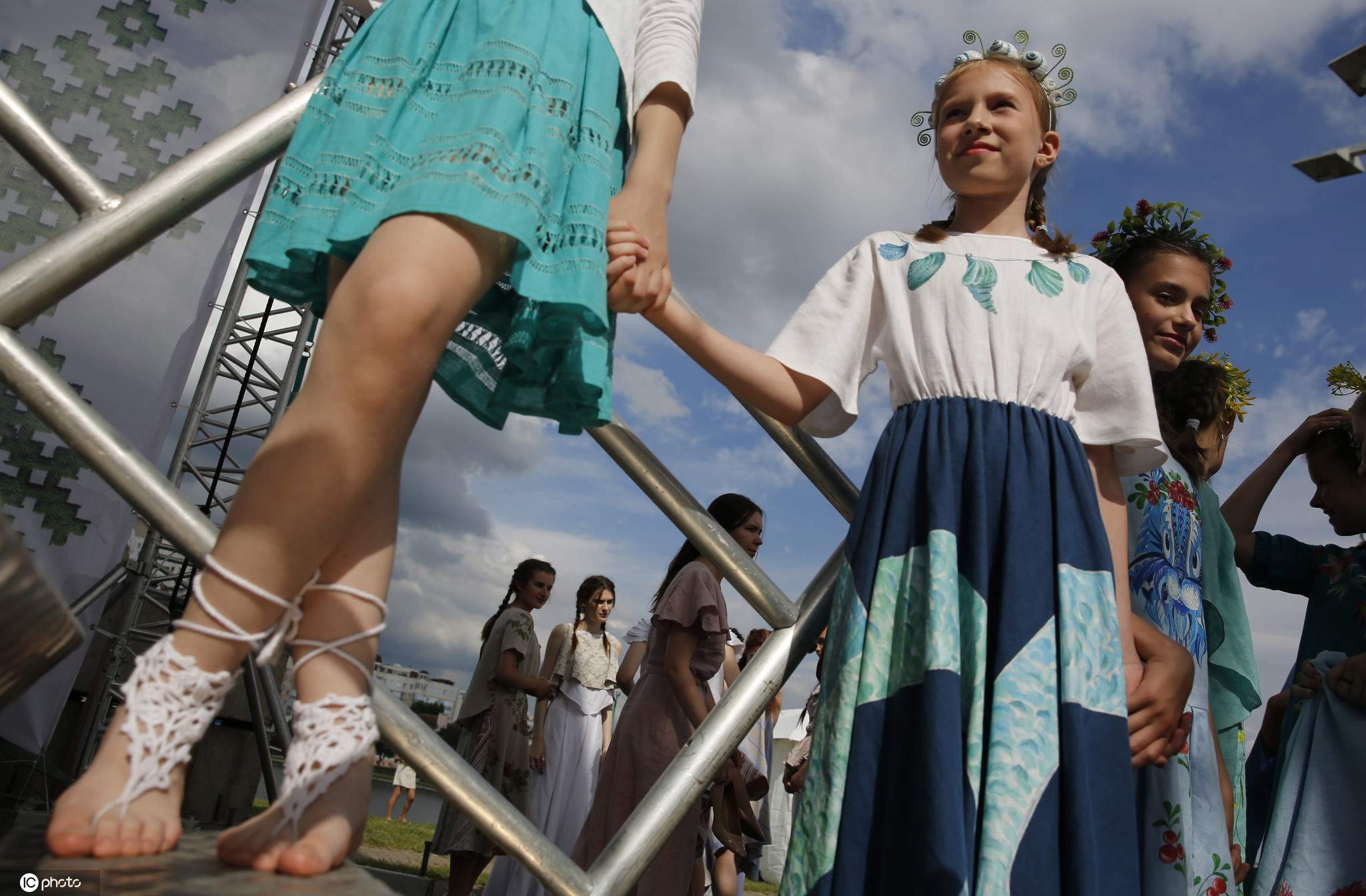 2020年7月2日,白俄羅斯明斯克,民眾穿著(zhù)傳統刺繡服飾,慶祝Vyshyvanka日,大批美女來(lái)襲。
