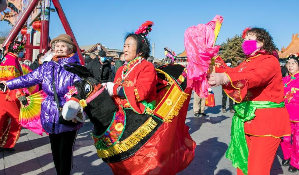 2月17日,民間藝人在內蒙古呼和浩特市玉泉區大召廣場(chǎng)進(jìn)行社火表演。當日,以“‘玉’見(jiàn)青城,‘泉’民同賀”為主題的內蒙古呼和浩特市玉泉區2021年春節、元宵節群眾性文化活動(dòng)啟幕。本次活動(dòng)將一直延續到3月14日,期間將組織開(kāi)展一系列創(chuàng )意新穎、內容豐富、貼近百姓的民俗文化、展覽展示和文體娛樂(lè )活動(dòng),豐富市民們的節日生活。